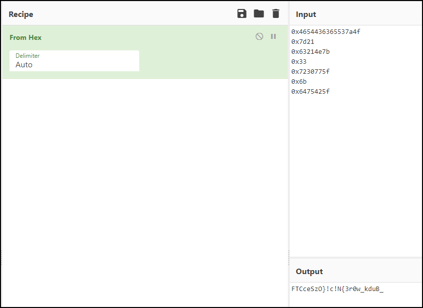 It appears to be in hex, so I copied and pasted each of those values into CyberChef.