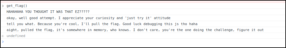 Loading the page and checking the Console we see a message saying the flag was loaded.