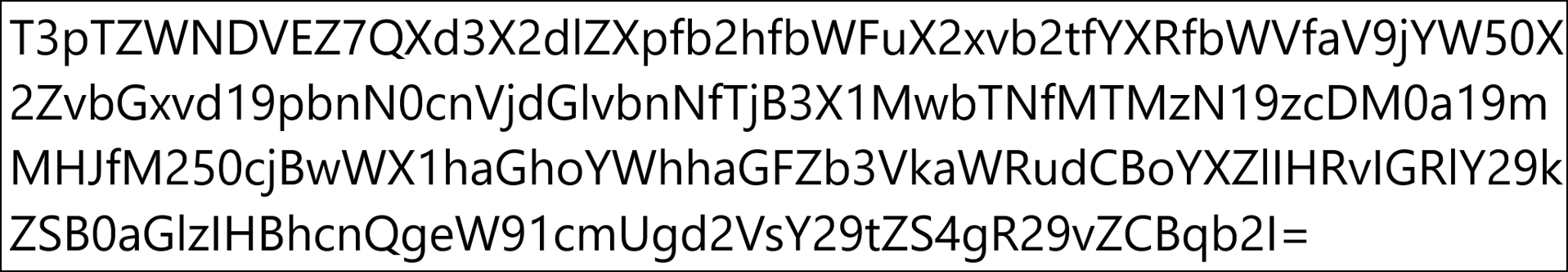 We have what appears to be a Base64 encoded string within an image. We need to get this into text so that we can base64 decode it.