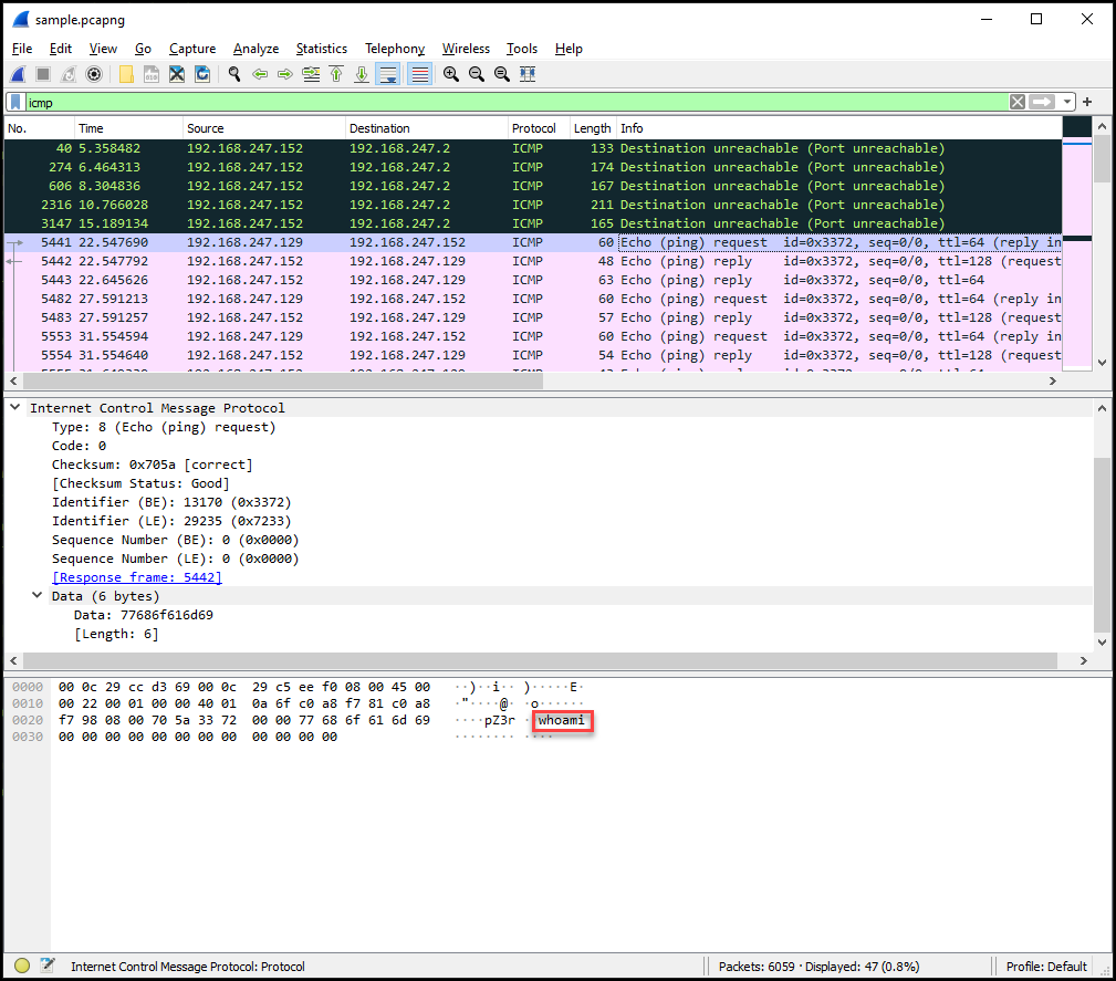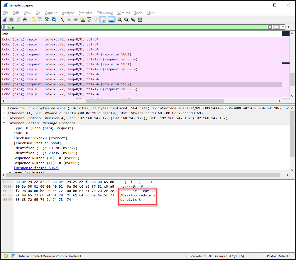 Since the title of this challenge is “Ping me” I filtered on icmp packets.