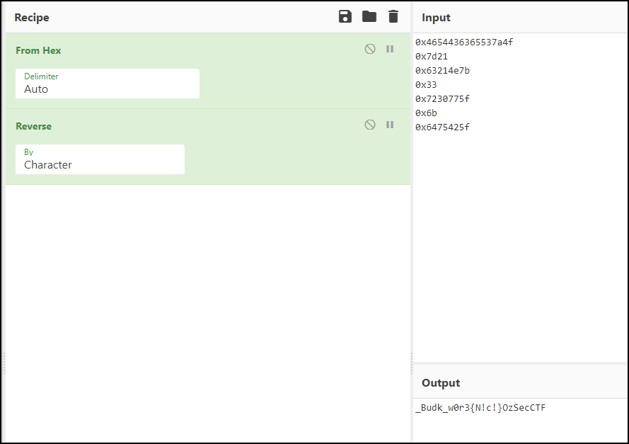Final flag: OzSecCTF{N!c3_w0rk_Bud!}